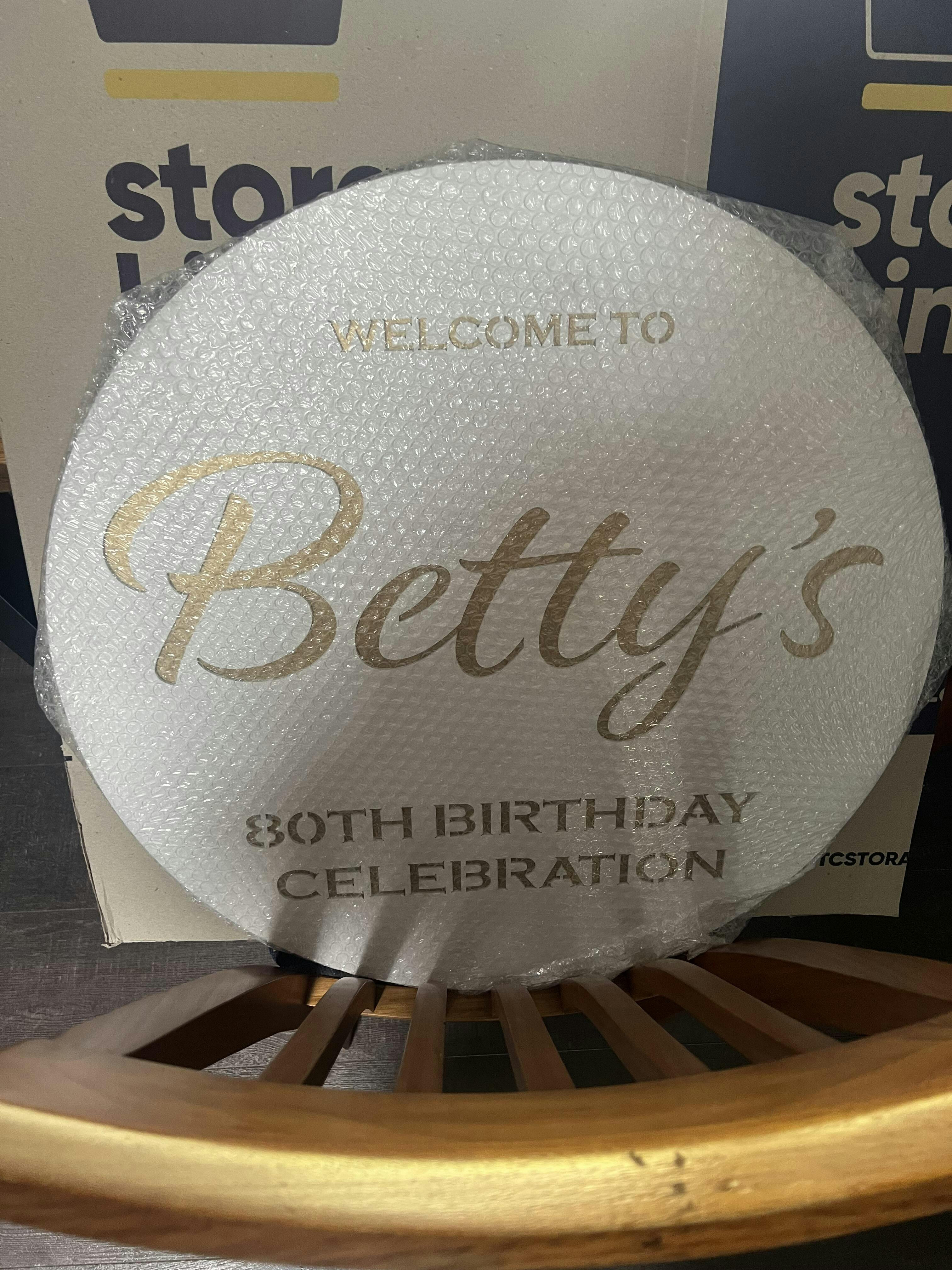 Dual Layer welcome sign, 2x 3mm MDF layers, top layer is painted white with text stencil cutout, bottom layer is painted metallic gold to give the entrance to your event that wow factor.